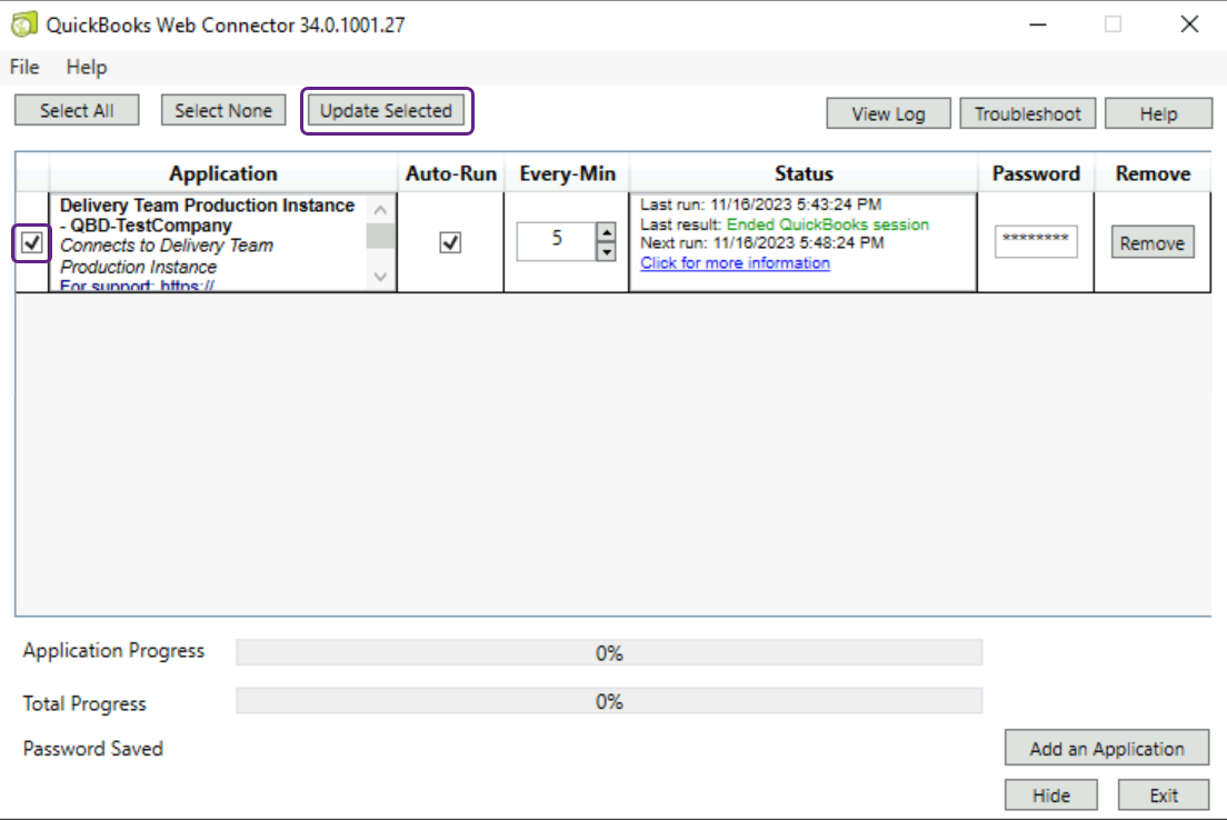 Next, the user should click Update Selected.